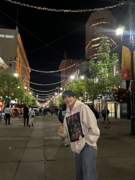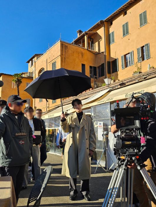 또 다른 사진에서는 해외로 보이는 거리 한복판에서 트렌치코트를 입고 우산을 든 채 촬영에 임하는 모습이 포착됐다. 촬영 스태프들 사이에 서 있는 김선호는 길게 뻗은 기럭지와 안정적인 비율로 시선을 사로잡으며 마치 한 편의 영화 속 장면 같은 분위기를 연출했다. 밤이 내려앉은 도심 거리에서는 후드 티셔츠에 데님 팬츠를 매치한 캐주얼한 차림으로 환하게 웃으며 엄지를 치켜세워 또 다른 매력을 드러냈다.