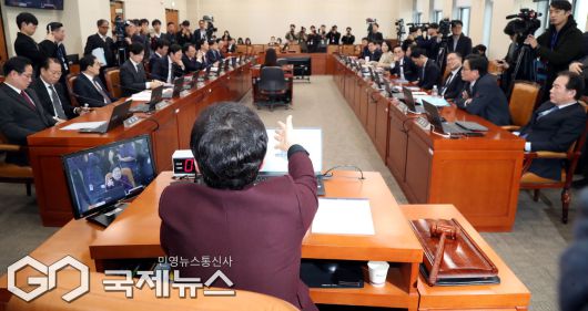(서울=국제뉴스) 국회 재정경제기획위원회 여야 의원들이 19일 서울 여의도 국회에서 열린 전체회의에서 이혜훈 기획예산처 장관 후보 청문회 개회를 두고 공방을 펼치고 있다./사진=이용우 기자