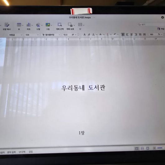 공개한 사진 속에는 '우리동네 도서관'이라는 제목이 적힌 노트북 화면이 담겨 있어 눈길을 끈다.