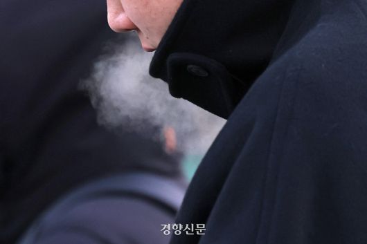 지난달 서울 세종대로에서 한 시민이 입김을 내쉬며 출근하고 있다. 정효진 기자 |