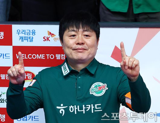 [고양(경기)=스포츠투데이 팽현준 기자] 19일 경기도 고양 킨텍스 PBA스타디움에서 열린 '웰컴저축은행 PBA 팀리그 2025-2026' SK렌터카와 하나카드의 챔피언결정전 1차전, 하나카드 캡틴 김병호가 인사하고 있다. 2026.01.19. [스포츠투데이 팽현준 기자 sports@stoo.com]