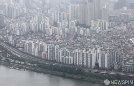 [서울=뉴스핌] 김학선 기자 = 서울 송파구 롯데월드타워에서 바라본 한강변 아파트 단지의 모습 2025.10.13 yooksa@newspim.com |
