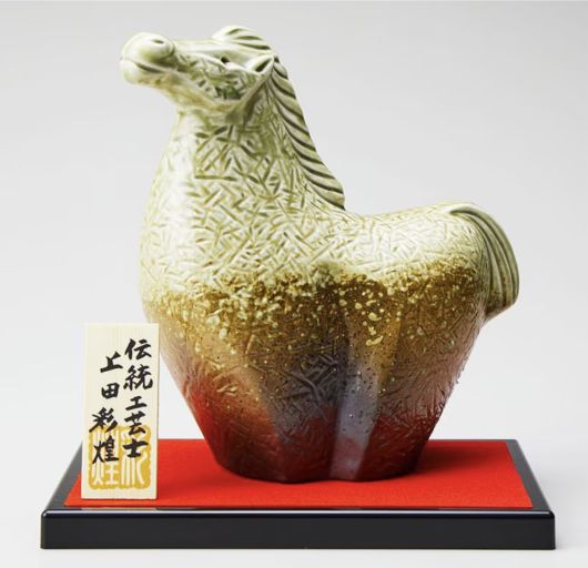 일본의 유명 전통공예사 우에다 사이호(上田 彩煌)가 직접 디자인한 입체적인 도자기 병은 찬란한 성공을 기원하는 황금빛과 세련된 갈색의 조화를 이룬다. 정교한 균열 기법이 적용된 고전적 미감에 도약하는 말의 형상을 입체적으로 구현해 신년 선물 및 장식품으로서의 가치를 높였다.