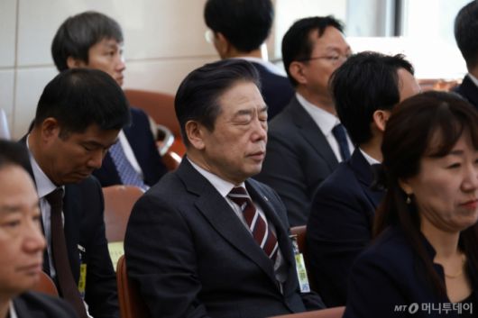 [서울=뉴시스] 고승민 기자 = 김형석 독립기념관장이 28일 서울 여의도 국회에서 열린 정무위원회의 국가보훈부, 국무조정실 등 국정감사에서 시작 전 눈을 감고 있다. 2025.10.28. |