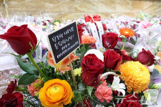 (서울=뉴스1) 신웅수 기자 = 19일 서울 여의도 국회 로텐더홀에 마련된 장동혁 국민의힘 대표 단식 농성장 앞에 장 대표를 응원하는 꽃이 놓여져 있다. 2026.1.19/뉴스1