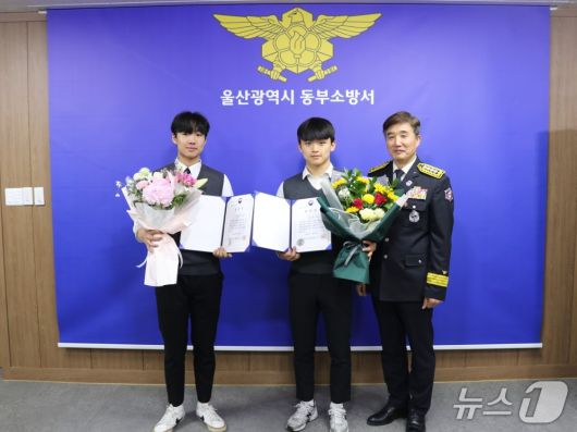 울산 동부소방서는 19일 화암고 2학년 문현서 군과 대송고 2학년 윤재준 군에게 표창장을 수여했다고 밝혔다.