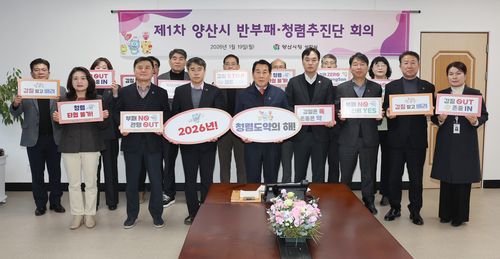 (양산=연합뉴스) 김동민 기자 = 경남 양산시는 19일 시청 상황실에서 '2026년 제1차 반부패·청렴추진단 회의'를 열고 청렴도 향상을 위한 본격적인 활동에 나섰다.