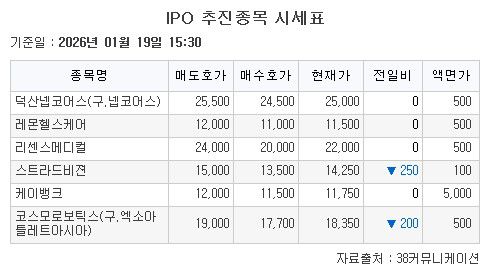 IPO 추진종목 시세표. |