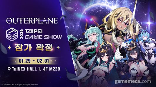 메이저나인이 브이에이게임즈에서 개발하고 자사가 서비스하는 전략 RPG ‘아우터플레인(OUTERPLANE)’으로 타이페이 게임쇼 2026에 참가한다.;