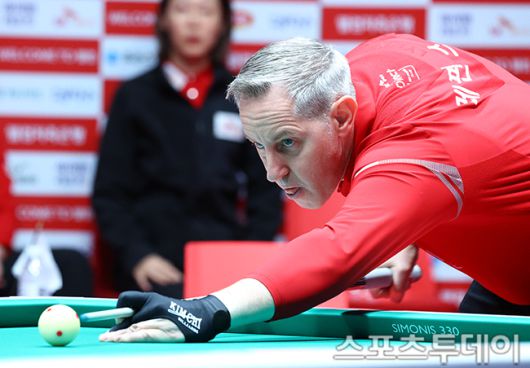 [고양(경기)=스포츠투데이 팽현준 기자] 19일 경기도 고양 킨텍스 PBA스타디움에서 열린 '웰컴저축은행 PBA 팀리그 2025-2026' SK렌터카와 하나카드의 챔피언결정전 1차전, SK렌터카 에디 레펀스가 샷을 하고 있다. 2026.01.19. [스포츠투데이 팽현준 기자 sports@stoo.com]