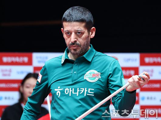 [고양(경기)=스포츠투데이 팽현준 기자] 19일 경기도 고양 킨텍스 PBA스타디움에서 열린 '웰컴저축은행 PBA 팀리그 2025-2026' SK렌터카와 하나카드의 챔피언결정전 1차전, 하나카드 초클루가 공격을 준비하고 있다. 2026.01.19. [스포츠투데이 팽현준 기자 sports@stoo.com]