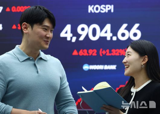 [서울=뉴시스] 류현주 박주성 홍효식 황준선 김경택 기자 = 코스피가 12거래일째 상승세를 이어가며 사상 처음으로 4900포인트를 돌파했다.