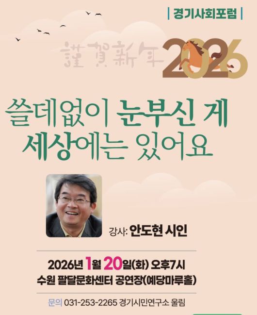 우리 사회의 담론과 대안을 모색하는 경기사회포럼은 새해 첫 번째 공식 포럼을 20일 오후7시 수원 팔달문화센터 공연장(예당마루홀)에서 개최한다.