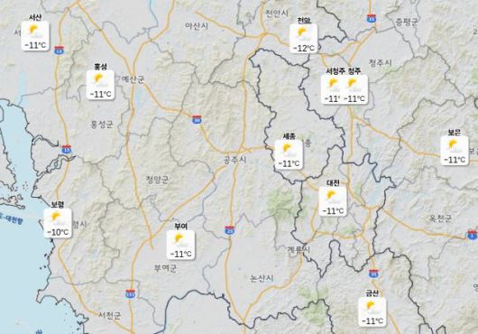 이날 오후 9시를 기해 충청 전역에 한파주의보가 발효됐고 충남 태안·당진·서산·보령·서천·홍성에는 강풍주의보가 내려졌다.