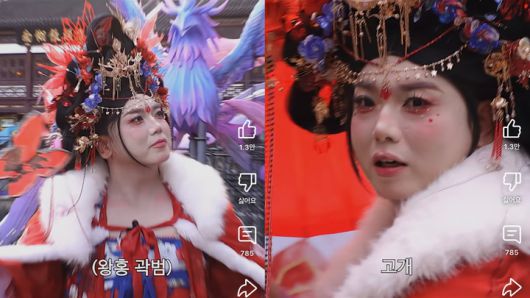 완성된 모습은 전형적인 왕홍 스타일 그 자체였다. 화려한 황후 콘셉트의 헤어 장식, 강렬한 레드와 블루 컬러가 조화를 이룬 의상, 디테일까지 살아 있는 메이크업이 과하지 않으면서도 균형을 이뤘다는 평가다. 왕홍 특유의 과감함이 오히려 곽범의 얼굴형과 표정에 자연스럽게 녹아들며, '분장'이 아닌 '콘셉트 화보'에 가깝다는 반응이 이어졌다.