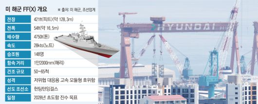 19일 조선업계에 따르면 미 해군은 지난주 미국 버지니아주 앨링턴에서 열린 ‘해군수상함협회(SNA) 2026’에서 차기 호위함 FF(X) 사업에 대한 세부 내용을 공개했다. 이 사업은 헌팅턴 잉걸스(HII)가 선도 조선소로 참여해 총 50~65척을 건조할 예정으로, 2028년까지 초도함 진수를 목표로 하고 있다.