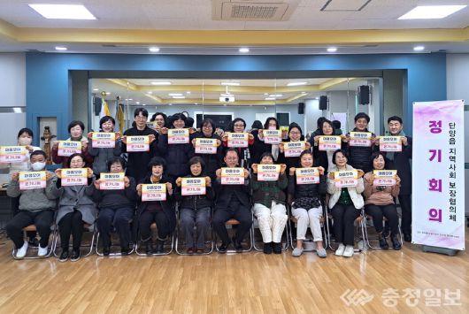 단양군 단양읍지역사회보장협의체가 상반기 정기회의에서 위원 활동 의지를 다지는 선포식을 갖고 있다. |