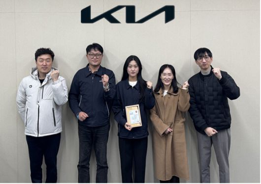 환경공단 광주전남제주본부가 '산업 폐플라스틱 재활용전환' 추진사업의 공단이사장 표창을 수여하고 기념촬영하고 있다.왼쪽부터 한국환경공단 백광일(자원순환지원부장 직무대리), 기아 정재희 광주환경소방팀장, (수상자) 기아 임주원 매니저, 광주광역시청 양지은 자원재활용팀장, 광주광역시청 이수빈 주무관./환경공단 광주전남제주본부 |