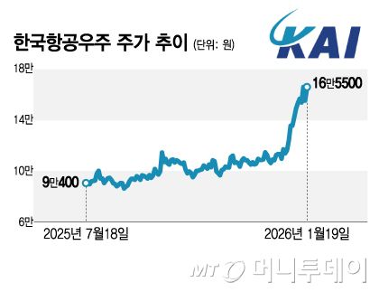 19일 거래소에서 한국항공우주는 전 거래일 대비 9600원(6.16%) 오른 16만5500원에 거래를 마쳤다. 장중 17만4500원까지 오르며 신고가를 경신했다.