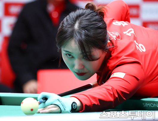 [고양(경기)=스포츠투데이 팽현준 기자] 19일 경기도 고양 킨텍스 PBA스타디움에서 열린 '웰컴저축은행 PBA 팀리그 2025-2026' SK렌터카와 하나카드의 챔피언결정전 1차전, SK렌터카 강지은이 샷을 하고 있다. 2026.01.19. [스포츠투데이 팽현준 기자 sports@stoo.com]