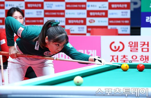 [고양(경기)=스포츠투데이 팽현준 기자] 19일 경기도 고양 킨텍스 PBA스타디움에서 열린 '웰컴저축은행 PBA 팀리그 2025-2026' SK렌터카와 하나카드의 챔피언결정전 1차전, 하나카드 사카이 아야코가 공격하고 있다. 2026.01.19. [스포츠투데이 팽현준 기자 sports@stoo.com]