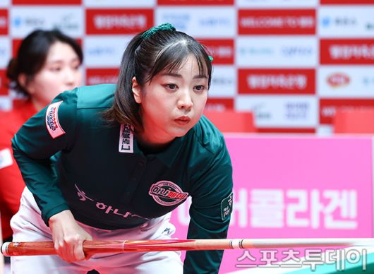 [고양(경기)=스포츠투데이 팽현준 기자] 19일 경기도 고양 킨텍스 PBA스타디움에서 열린 '웰컴저축은행 PBA 팀리그 2025-2026' SK렌터카와 하나카드의 챔피언결정전 1차전, 하나카드 사카이 아야코가 공격하고 있다. 2026.01.19. [스포츠투데이 팽현준 기자 sports@stoo.com]