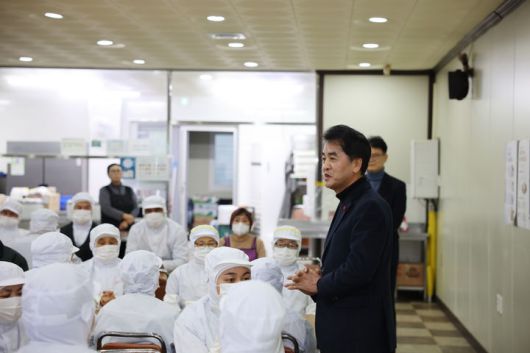 [보은=뉴시스]연종영 기자 = 최재형 충북 보은군수는 19일 김치제조기업 ㈜이킴을 방문해 지난해 화재로 피해를 입은 제조현장 상황을 점검하고 정상화 지원 방안을 논의했다.