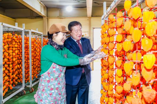 경남 함안군이 설 명절과 제15회 함안곶감축제를 앞두고 곶감 건조 작업에 박차를 가하고 있다. 조근제 함안군수는 지난 16일 함안면 파수리의 한 곶감 농가를 방문해 현장을 점검하고 농민들을 격려했다.
