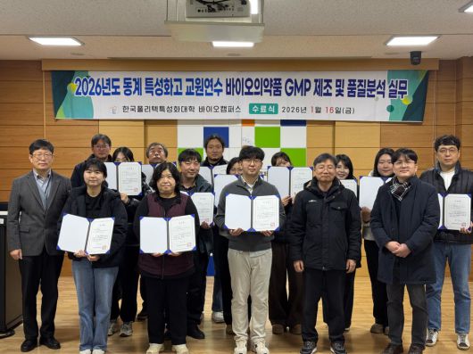 한국폴리텍대학 바이오캠퍼스는 전국 바이오 분야 마이스터고와 특성화고 교사를 대상으로 한 '2026년도 동계 특성화고 교원 현장직무연수' 수료식을 했다고 19일 밝혔다.