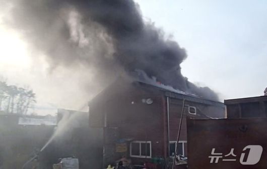 (평택=뉴스1) 김기현 기자 = 19일 오후 3시 54분께 경기 평택시 현덕면 장수리의 단층짜리 자원순환시설에서 불이 나 40여분 만에 꺼졌다.