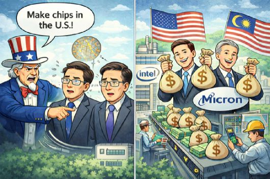 미국이 관세와 정책을 앞세워 글로벌 반도체 공급망을 자국으로 끌어들이려는 가운데, 정작 미국 반도체 기업들은 수익성과 지리적 효율을 이유로 말레이시아 투자를 이어가는 모습이다.