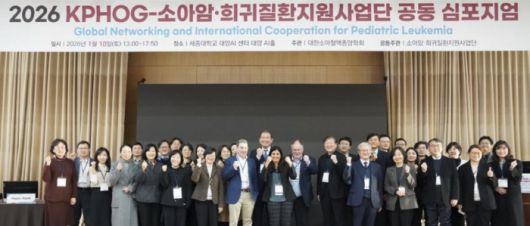 [스포츠조선 장종호 기자] 대한소아혈액종양학회(이사장 박현진)와 소아암·희귀질환지원사업단(단장 최은화)이 공동 주최한 '2026 KPHOG-소아암·희귀질환지원사업단 공동 심포지엄'이 지난 10일 열렸다. KPHOG(Korean Pediatric Hematology Oncology Group)는 대한소아혈액종양학회 산하의 다기관 임상 연구 그룹이다.