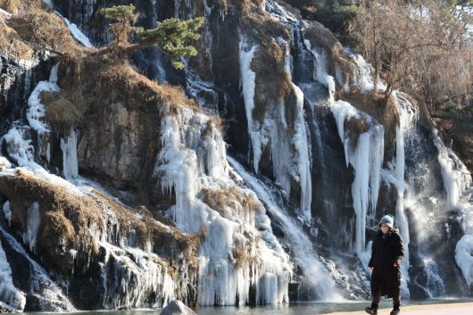 전국 곳곳에 한파특보가 발효 중인 2016년 1월 11일 오후 서울 서대문구 홍제천 인공폭포가 얼어붙어 있다./뉴스1 |