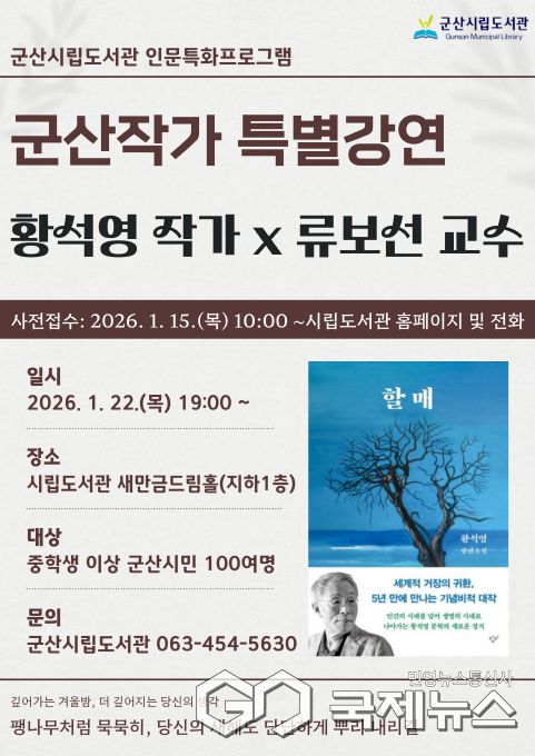 특히 소설『할매』는 군산 하제마을의 600년 된 팽나무 '할매'를 화자로 내세운 작품인 만큼, 이번 강연은 군산 시민들에게 더욱 각별하고 깊은 울림을 전할 것으로 보인다.