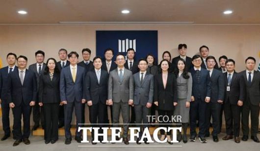 '대가' 수준 각 분야 전문검사를 인증하는 1급 공인전문검사(블랙벨트)에 장준혁 검사가 선정됐다. 사진은 공인전문검사 인증서 수여 후 기념촬영하는 구자현 검찰총장 대행과 검사 28명./대검찰청 |