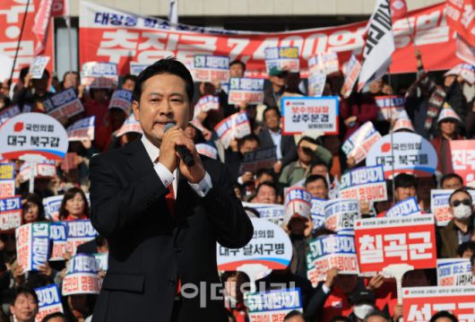 [이데일리 노진환 기자] 장동혁 국민의힘 당대표가 12일 서울 여의도 국회 본청 앞에서 열린 대장동 일당 7400억 국고 환수 촉구 및 검찰 항소포기 외압 규탄대회에서 발언을 하고 있다. |