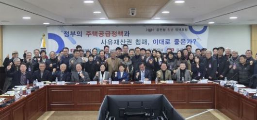공공주택지구 전국연대 대책협의회(공전협)가 19일 오후 2시 국회의원회관 제8간담회장에서 '정부의 주택공급정책과 사유재산권 침해, 이대로 좋은가'를 주제로 신년 정책포럼을 개최했다.