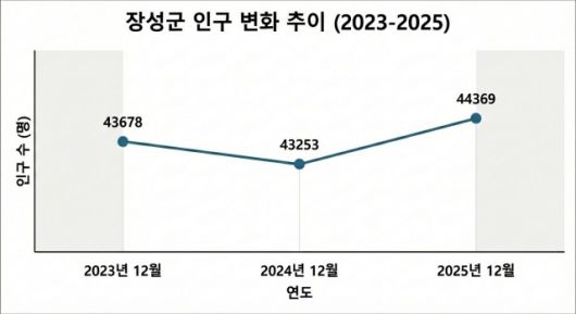 19일 장성군에 따르면 지난해 12월 기준 군 인구는 4만4369명으로 1년 전보다 1116명 증가했다. 감소 일변도였던 농촌 인구 구조 속에서 이 같은 증가는 이례적인 성과로 꼽힌다.