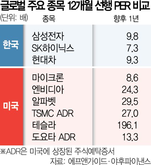 향후 이익 전망치를 고려한 12개월 선행 PER로 비교하면 여전히 저평가 구간이라는 분석에 힘이 실리는 이유다. 금융정보 업체 에프앤가이드에 따르면 삼성전자와 SK하이닉스의 12개월 선행 PER은 각각 9.84배, 7.27배를 기록 중이다. 미국 시장에 상장돼 상대적으로 고평가를 받는 마이크론의 12개월 선행 PER은 8.61~11.45배 수준이다. 국내 메모리반도체 기업들의 밸류에이션이 시차를 두고 마이크론을 쫓아간다는 점, 엔비디아(24배), 알파벳(29배) 등 빅테크 대비 크게 낮은 수준이라는 점을 감안하면 추가 상승 여력이 여전하다는 평가다.
