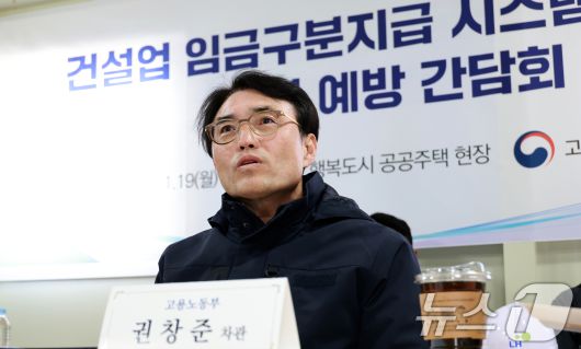 (세종=뉴스1) = 권창준 고용노동부 차관이 19일 오후 세종시 내 한국토지주택공사(LH)에서 발주한 공공주택 건설 현장을 찾아 건설분야 임금체불 예방을 위한 현장 간담회를 하고 있다. (고용부 제공. 재판매 및 DB 금지) 2026.1.19/뉴스1