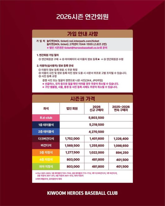 (MHN 유경민 기자) 프로야구 키움 히어로즈(대표이사 위재민)가 새 시즌 연간회원을 모집한다.