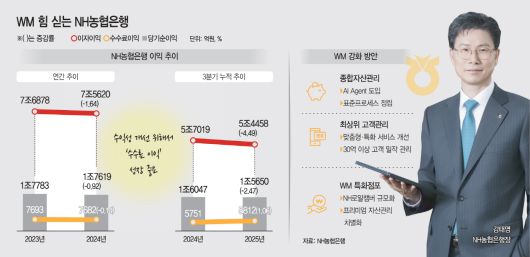이 같은 노력에 힘입어 농협은행의 지난해 3분기 누적 수수료이익은 전년 동기 대비 1.06% 증가한 5812억원을 기록했다. 같은 기간 WM 관련 이익은 18.22% 증가한 2265억원으로, 수수료이익 성장의 핵심 동력으로 작용했다.
