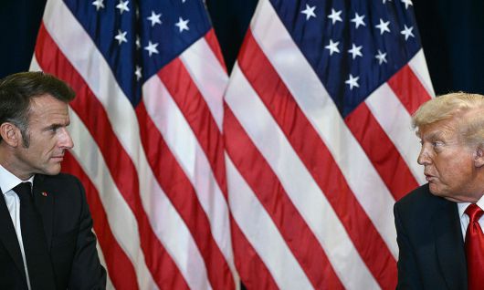 2025년 9월 23일 뉴욕에서 에마뉘엘 마크롱 프랑스 대통령(왼쪽)과 도널드 트럼프 미국 대통령이 양자회담을 하고 있다. AFP연합뉴스 |
