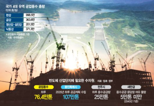 19일 정부와 한국수자원공사에 따르면 더불어민주당 전북도당과 시민단체들이 반도체 단지 이전을 주장하는 새만금 지역에 물을 공급하는 전북 진안군 용담댐의 공업용수 여력은 10만 톤을 밑도는 것으로 파악됐다. 용인 반도체 산단은 하루 76만 4000톤의 공업용수를 필요량으로 정하고 물 확보 계획이 수립돼 있다.
