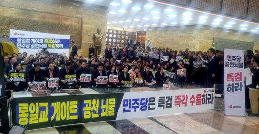 국민의힘은 장동혁 대표가 단식 농성 중인 국회 로텐더홀에서 더불어민주당을 향해 "통일교·공천헌금 특검을 수용하라"며 규탄대회를 진행했습니다.