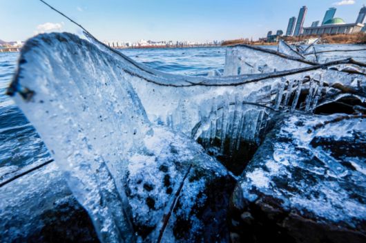 20일은 전국 대부분 지역에서 아침 기온이 크게 떨어질 전망이다. 사진은 서울 영등포구 여의도 인근 한강에 고드름이 얼어 있는 모습./사진=뉴스1 |