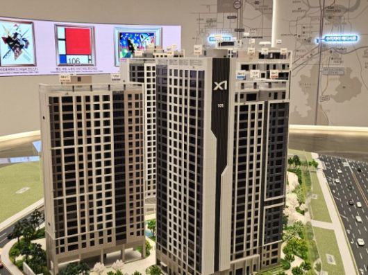 지난해 12월 분양에 나선 GS건설 수지자이 에디시온 견본주택 모형도./한국금융신문 조범형 기자 |
