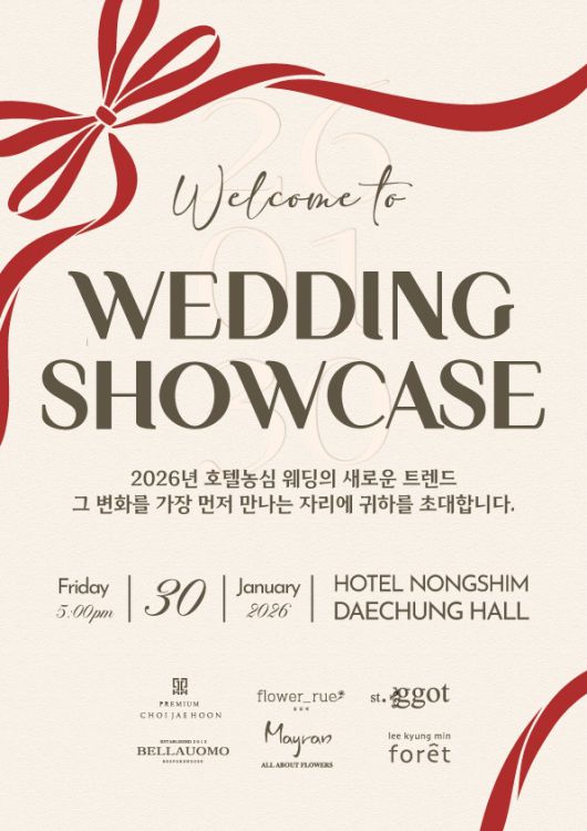 한편 웨딩 쇼케이스 예약은 네이버 폼에서 할 수 있다. 자세한 문의는 ‘호텔농심웨딩’ 카카오톡 채널 또는 호텔농심 연회예약실을 통해 가능하다.