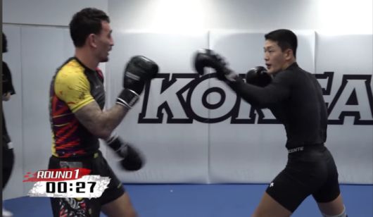 지난해 4월 방한한 맥스 할로웨이가 유주상과 스파링을 벌이는 장면. 정찬성 Korean Zombie 유튜브 채널 영상 캡처 |