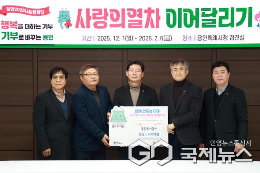 (용인=국제뉴스) 강정훈 기자 = 용인도시공사(사장 신경철)는 19일 '노사합동 사랑의열차 이어달리기' 성금 1,400만원을 용인특례시에 기탁했다.